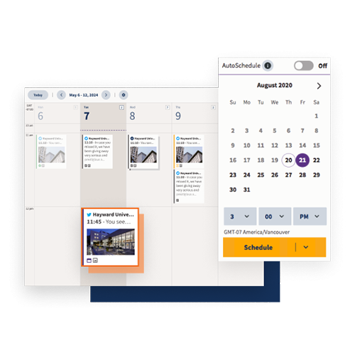 Save time by scheduling posts across all your social networks in just a few clicks. Automatically schedule your content and review posts in a simple calendar view.